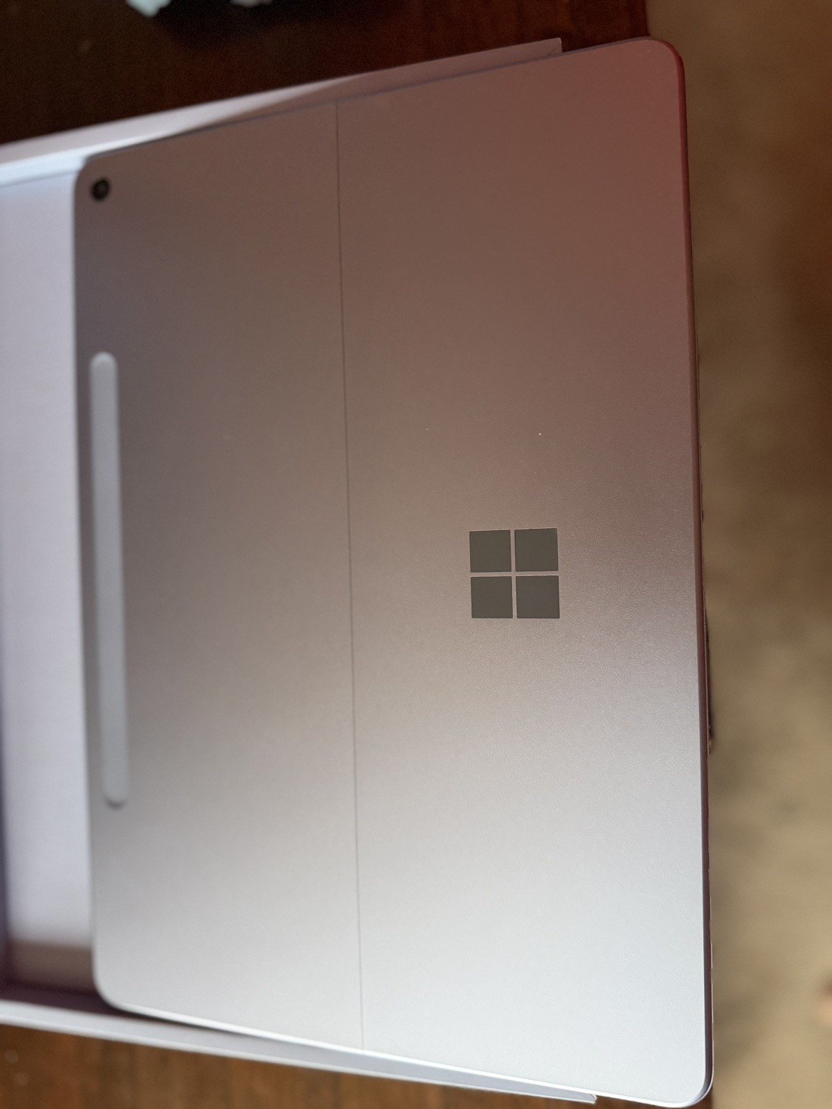 Opened only for photos never been set up. It was a gift and to be honest I already have an IPad that I spent a fortune on and only use for solitaire so it makes no sense to keep it. The Microsoft 12" Surface Pro with Copilot+ PC is a powerful and sleek laptop equipped with the Snapdragon X Plus Processor, 512 GB SSD, and 16 GB of LPDDR5 RAM. It boasts a vibrant violet colour and a 2.2K resolution for stunning visuals. With a battery life of up to 16 hours and compatibility with Windows 11, this laptop offers both style and performance for all your computing needs. Its compact dimensions make it perfect for on-the-go use, while the Li-ion battery ensures long-lasting power. Ideal for users looking for a high-quality and reliable PC for work or leisure.