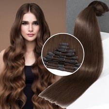 170G DICK Clip In Remy Echthaar Doppelt Weft Extensions Haarteil 8 Tressen BLOND