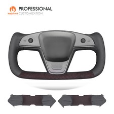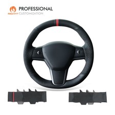 Leder Alcantara Lenkrad für Tesla Modell 3 Modell Y neu bezogen schwarzer Naht