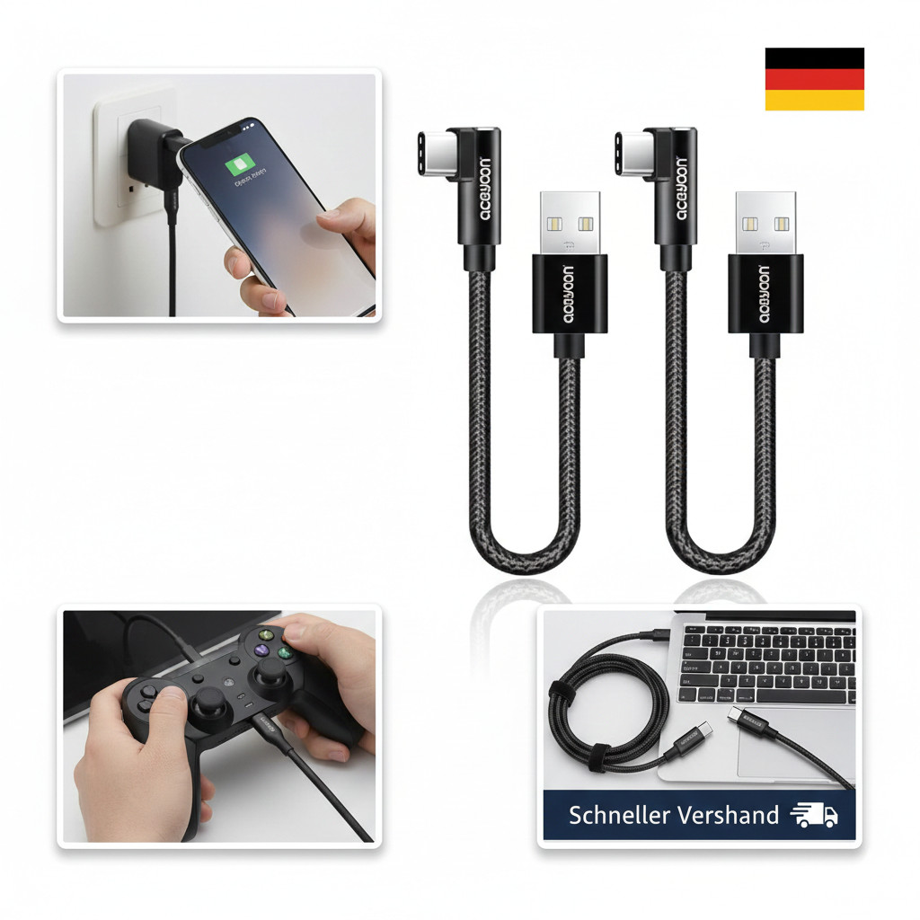 aceyoon USB auf USB C Kabel Kurz 20cm, 3 Stück 3A USB C Kabel 90 Grad Nylon Typ