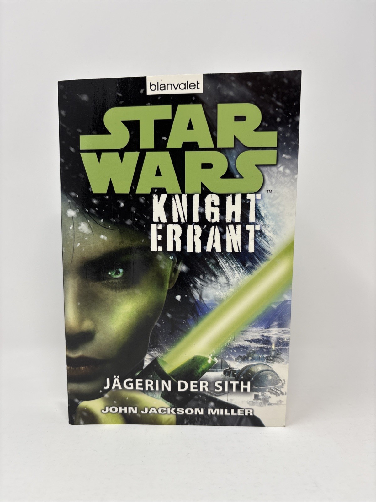 1x "Knight Errant - Jägerin der Sith" von John Jackson Miller. Das Buch ist gebraucht. Die Ecken sind bestoßen und der Einband sowie der Buchrücken haben Knicke. Der Roman stammt aus einem tierfreien Nichtraucherhaushalt.