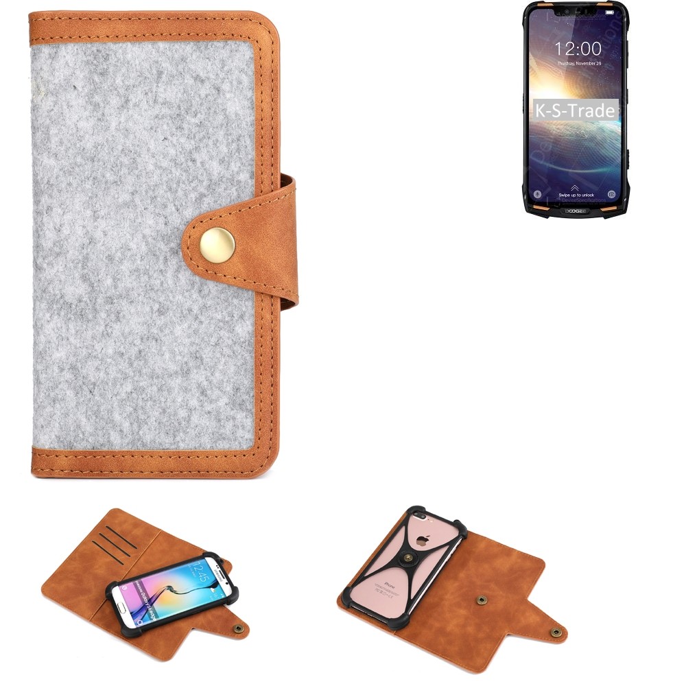 K-S-Trade Handyhülle kompatibel mit Doogee S90 Pro Schutzhülle Filz-Hülle Kunst-Leder hellgrau braun (1x). Eigenschaften - Material: Schutz-Hülle für Smartphones: Die Handy Hülle ist aus Filz gefertigt und ist innen mit Kunstleder verstärkt - Aussehen: Der braune Kunstleder-Rand veredelt die Handyhülle verleiht ihr eine optisch ansprechenden Aussehen.