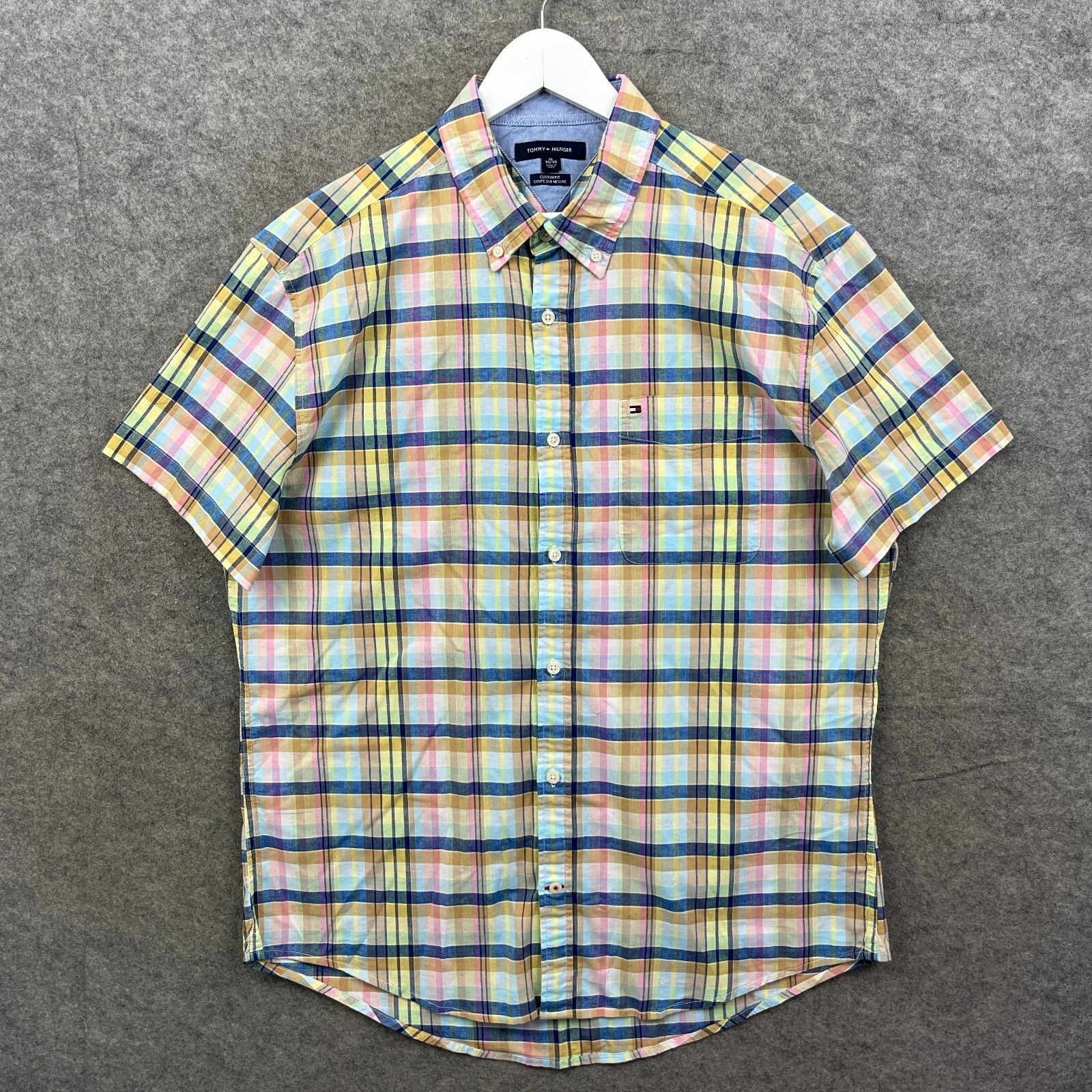 Tommy Hilfiger Hemd Herren XL blau Custom Fit Coupe Sur Mesure kariert Button Down