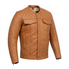 Neu Herren Hellbraun Anti Leder Jacke 100% Echtes Lammfell Freizeit Slim Fit
