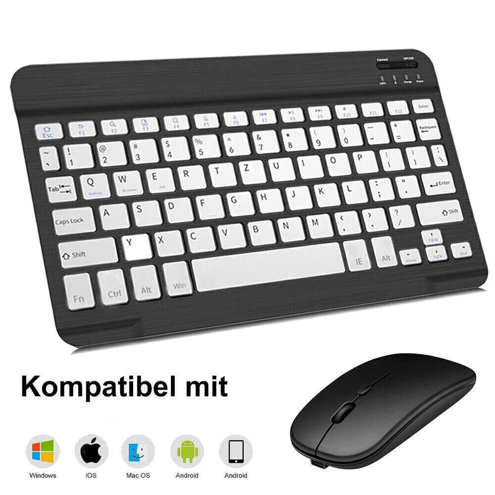 QWERTZ Tastatur Funk Maus Kabellos Keyboard Bluetooth Für PC iPad Layout Deutsch