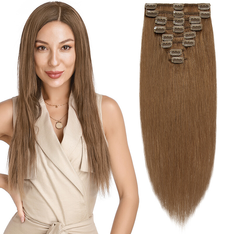 Echthaar Clip in Extensions 100% Real Remy Haarverlangerung Dick Balayage Glatt