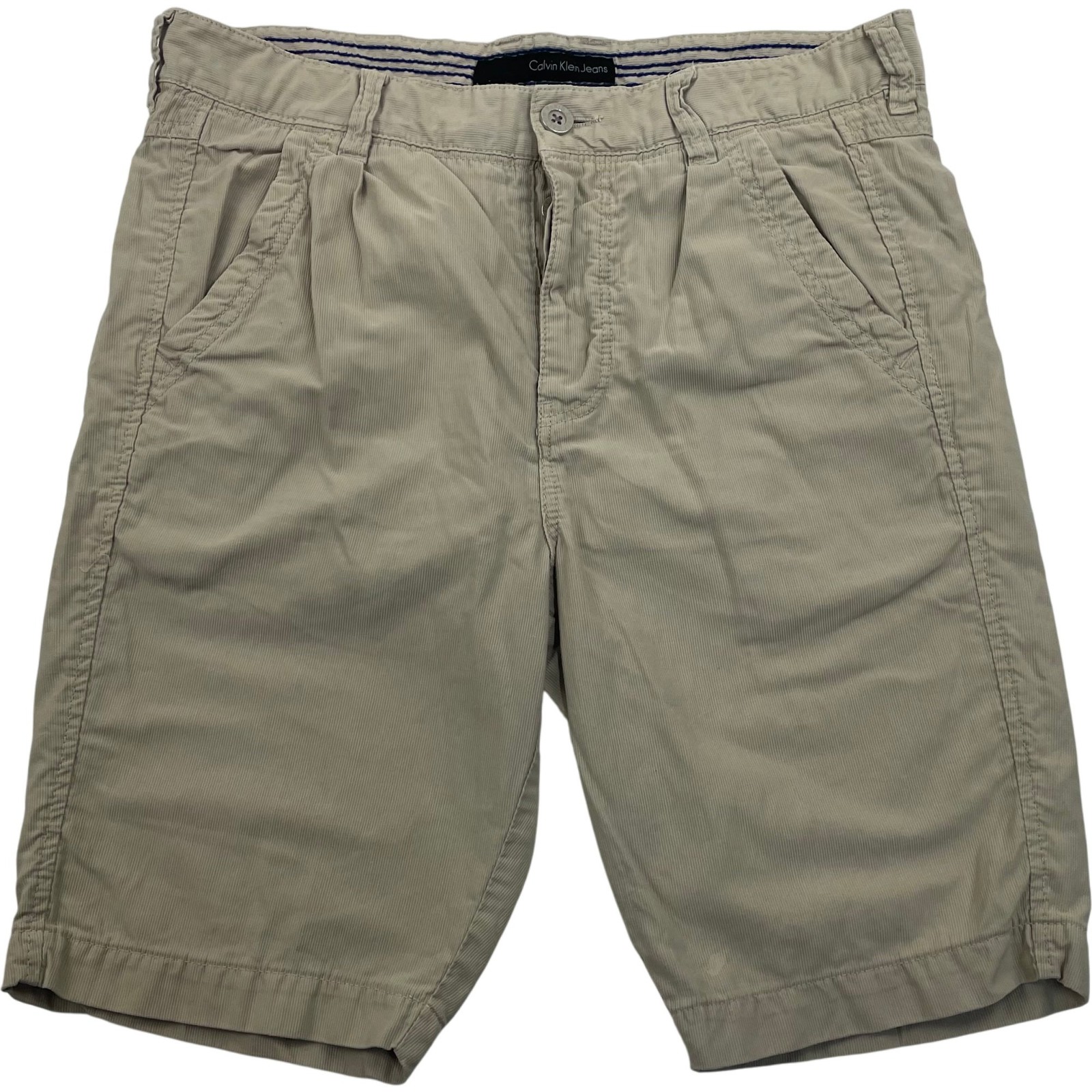 Calvin Klein Jeans Chino Shorts Casual Beige Mens W28 These Calvin Klein shorts are designed for casual comfort and style, featuring a classic beige colour that pairs well with any outfit. Made from 100% cotton, they offer breathability and comfort for everyday wear. The shorts come with button closure and pleated detailing for a refined look. Condition: Pre-owned - Good condition. Please see photos. Label Size: 28 Waist: 28 Inseam: 9”