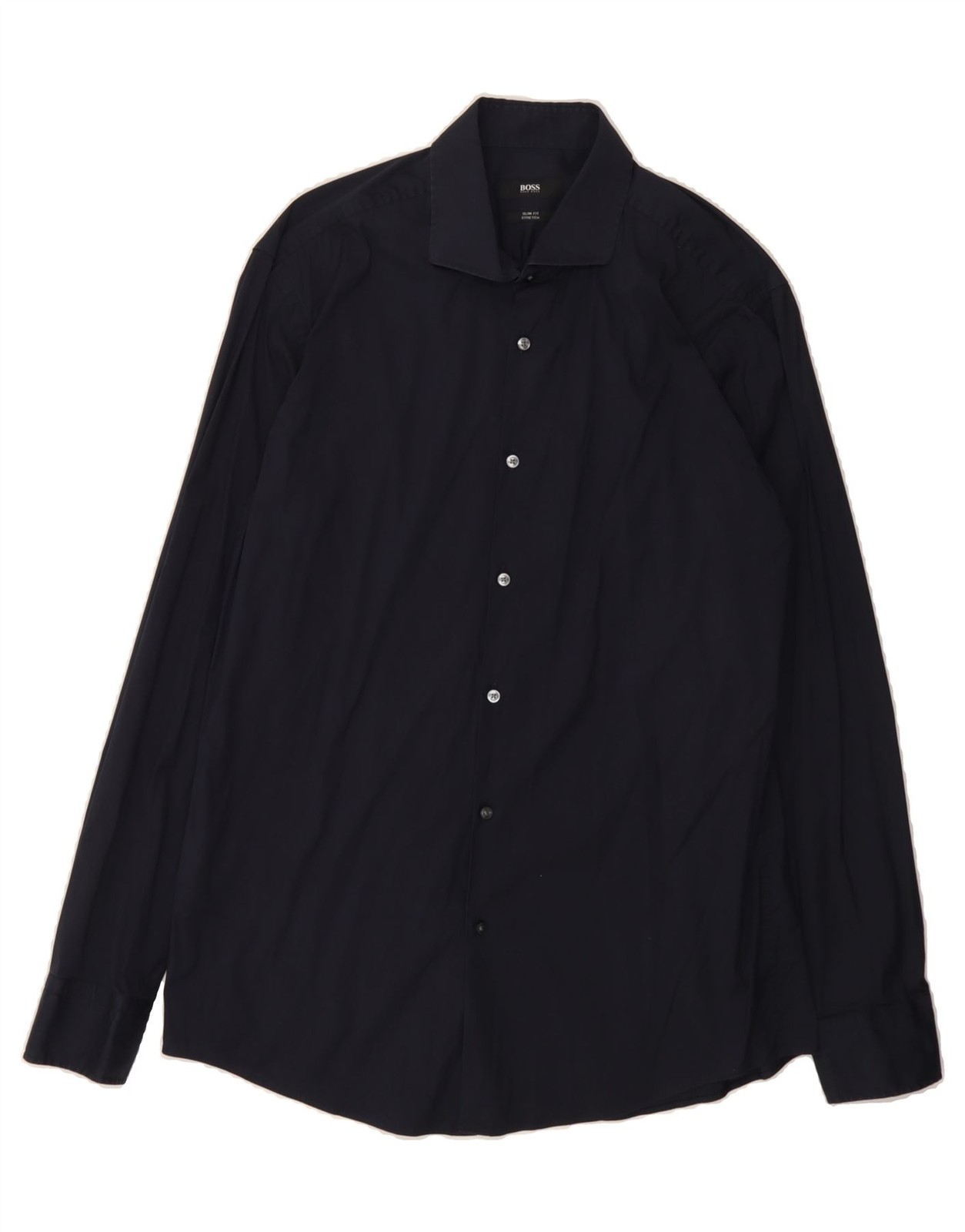 HUGO BOSS Mens Slim Fit Shirt Size 42 16 1/2 Large Navy Blue Cotton BY20.