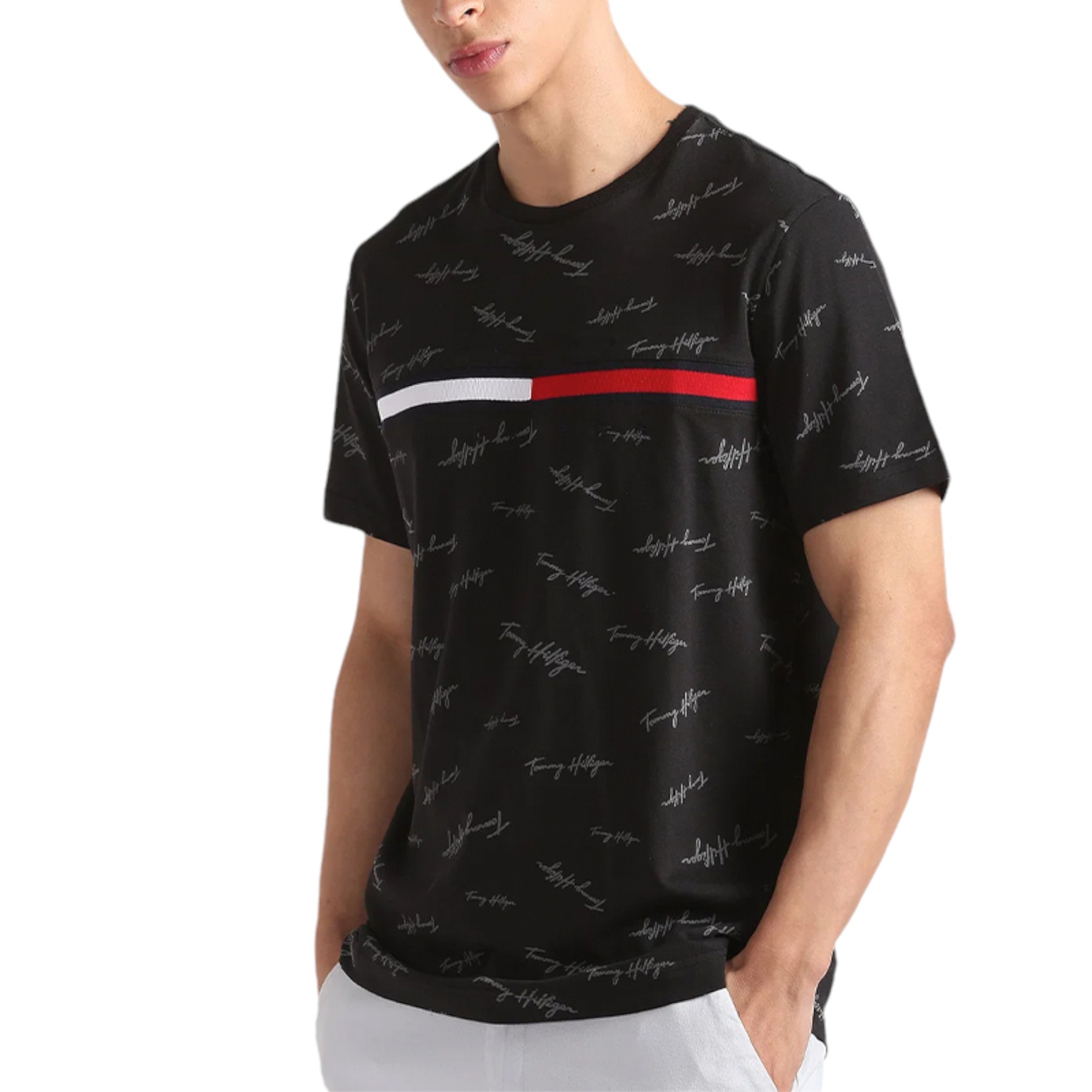 Tommy Hilfiger Herren T-Shirt Signature Flag Striped Crew Neck Sommer Baumwolle Tee