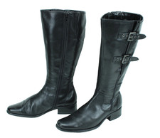 Elegante schwarze Lederstiefel von CAPRICE für Damen, die stilvolles Auftreten garantieren. Der Hochschaftstiefel in Größe 37,5 (UK 5, US 7) besticht durch sein hochwertiges Obermaterial aus Leder und eine runde Schuhspitze, die Komfort und Halt bietet. Ideal für Freizeitaktivitäten in der kühleren Jahreszeit, verfügen diese Stiefel über einen praktischen Reißverschluss und einen mittelhohen Blockabsatz mit einer Höhe von 5 bis 7,5 cm, der eine angenehme Trageerfahrung verspricht. Das klassische Design harmoniert mit verschiedensten Outfits und setzt modische Akzente. Die Schuhe sind kniehoch geschnitten und bieten dank der Standard-Schuhweite ausreichend Platz für ein angenehmes Laufgefühl. Ein Must-Have für jede modebewusste Frau, die Wert auf Qualität und Stil legt.