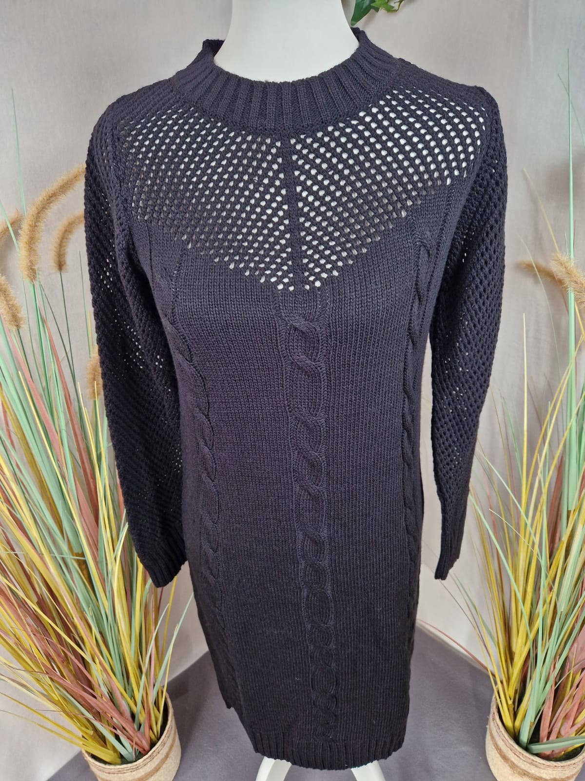 Bonprix Strickkleid Schwarz - Damen - Gr.32/34