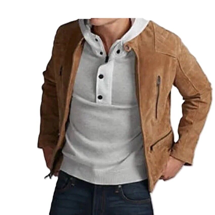 Herren 100 % echtes Wildleder hellbraun Biker Motorrad Jacke...