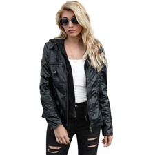 Schwarze Lederjacke mit Kapuze für Damen echtes Lammleder gerippt Sportmantel