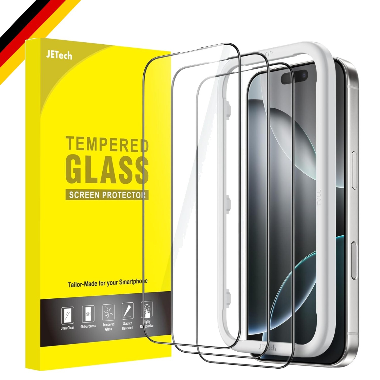Vollbild Schutzfolie für iPhone 16 Pro 6,3 Zoll Schwarz Hochglanz 3er Pack