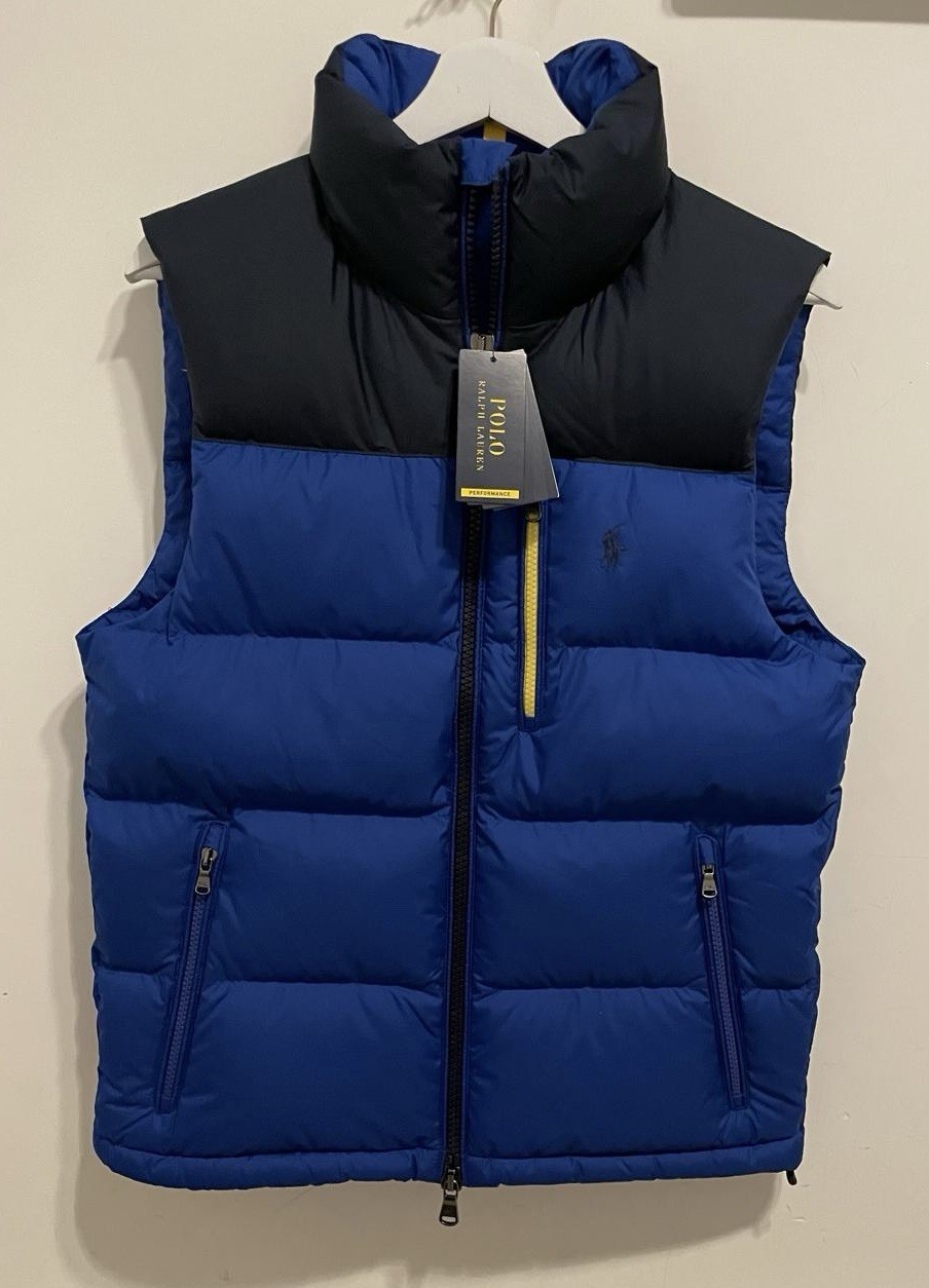 Polo Ralph Lauren Men EL Cap Gorham Colour Blocked Down Gilet Blue Size XS Material: shell - 100% polyester, lining - 100% nylon, filling - 75% duck down and 25% duck feathers Brand new with tags Not worn