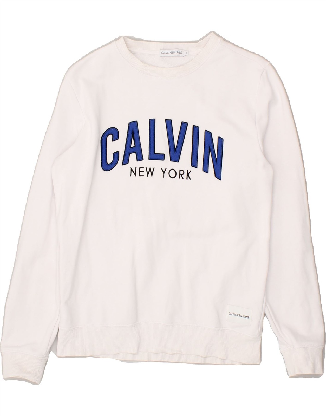 CALVIN KLEIN JEANS Girls Graphic Sweatshirt Jumper 11-12 Years White XN04.