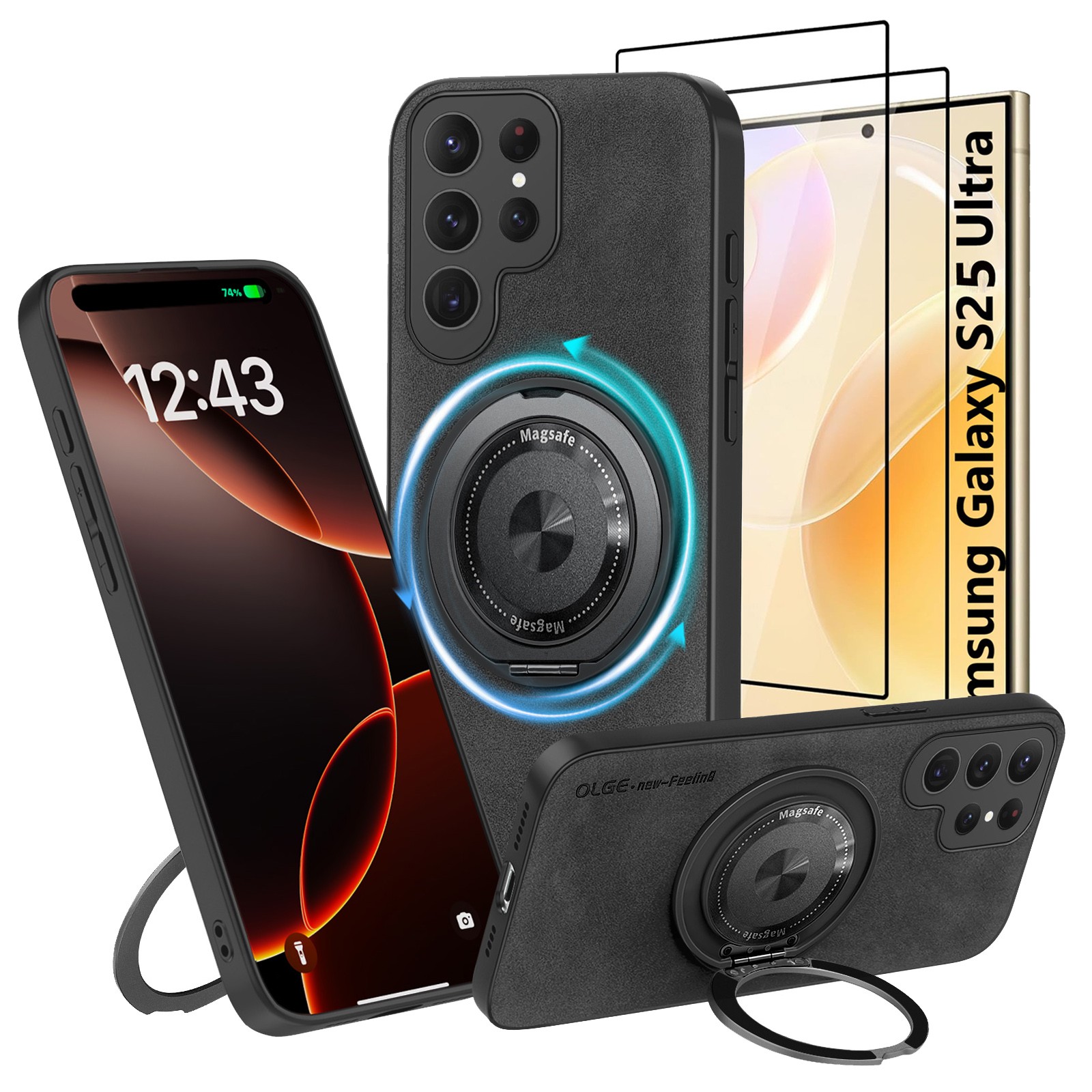 Premium PU-Leder Hülle mit Magnetic Ringhalter Ständer Cover für Samsung Galaxy S26 Ultra A17 A56 S25 S24 Ultra S25 Ultra S26 5G Schutz Case Magnetic Handyhülle Silikon Tasche Etui Back Cover Bumper mit2x Displayglas Glasfolie.