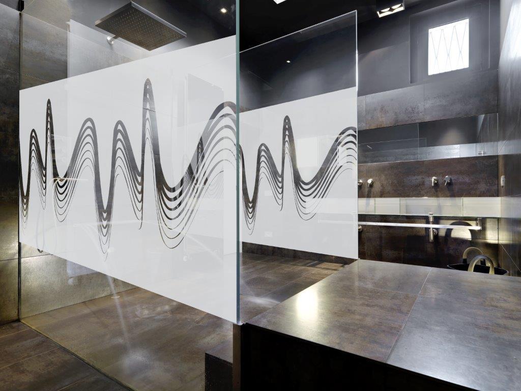 Wave Lined Pattern, Modern Frosted Designer Window Film - A Modern Stylish Frosted Line Waved Shape, Glass Film for privacy and aesthetics. Decorative patterned film, ideal for external facing windows, internal partitions, glass staircases, offices, bathrooms, shower screens etc.