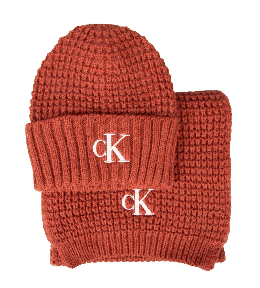 Damenset aus Schal und Mütze von CK CALVIN KLEIN JEANS mit aufgesticktem Logo au
