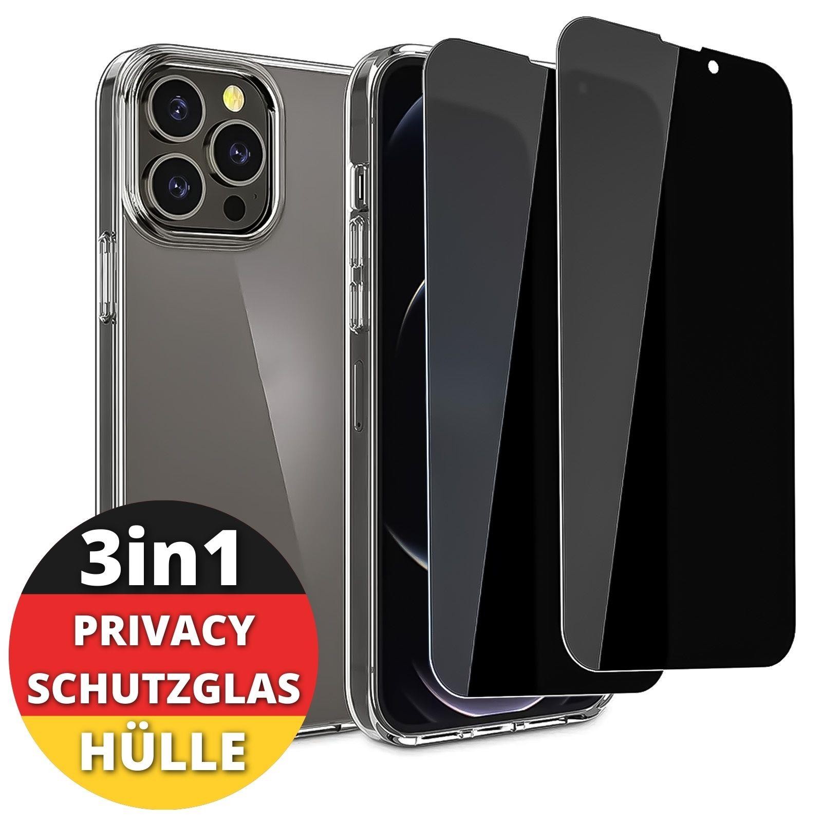 Schutz Hülle mit Glas für iPhone 14 13 12 Blickdicht Privacy Panzer 9H HD Dunkel