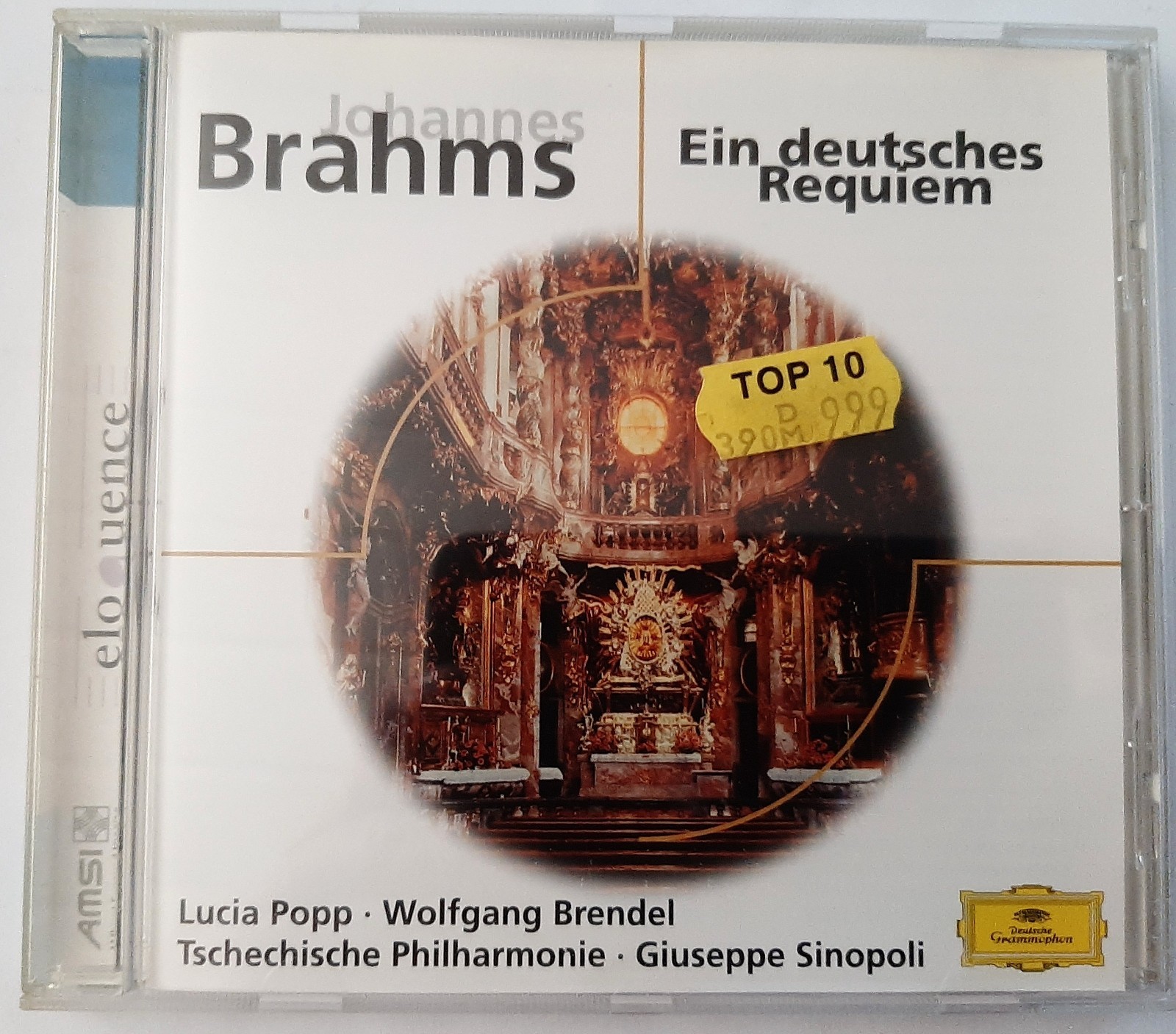 Das Produkt ist das Album "Johannes Brahms - Ein Deutsches Requiem" von 1983, aufgenommen von Prager Philharmonischer Chor, Tschechische Philharmmonie, Giuseppe Sinopoli, Wolfgang Brendel und Lucia Popp. Das Musiklabel ist Deutsche Grammophon und es ist eine geistliche Musik-Requiem-CD im Format CD.