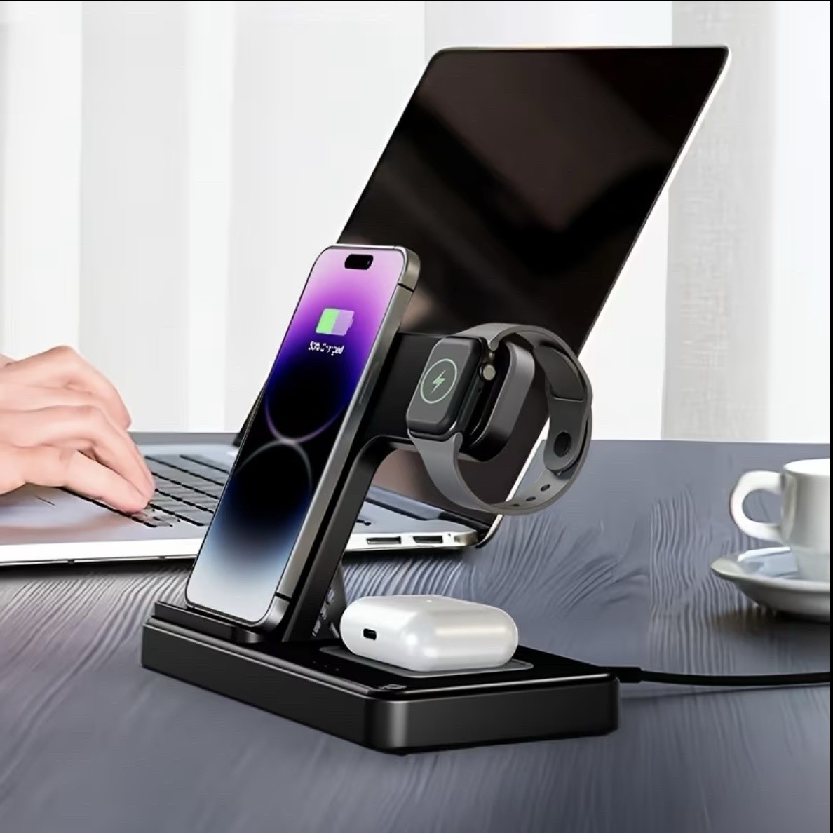 Erleben Sie kabellose Ladeleistung der nächsten Generation! Die Station unterstützt iPhone Modelle von 11 bis 17 (inkl. Pro / Pro Max / Mini / Plus), AirPods 2/3/Pro, sowie Apple Watch Modelle einschließlich Ultra10, Series 9/8/7/SE.
