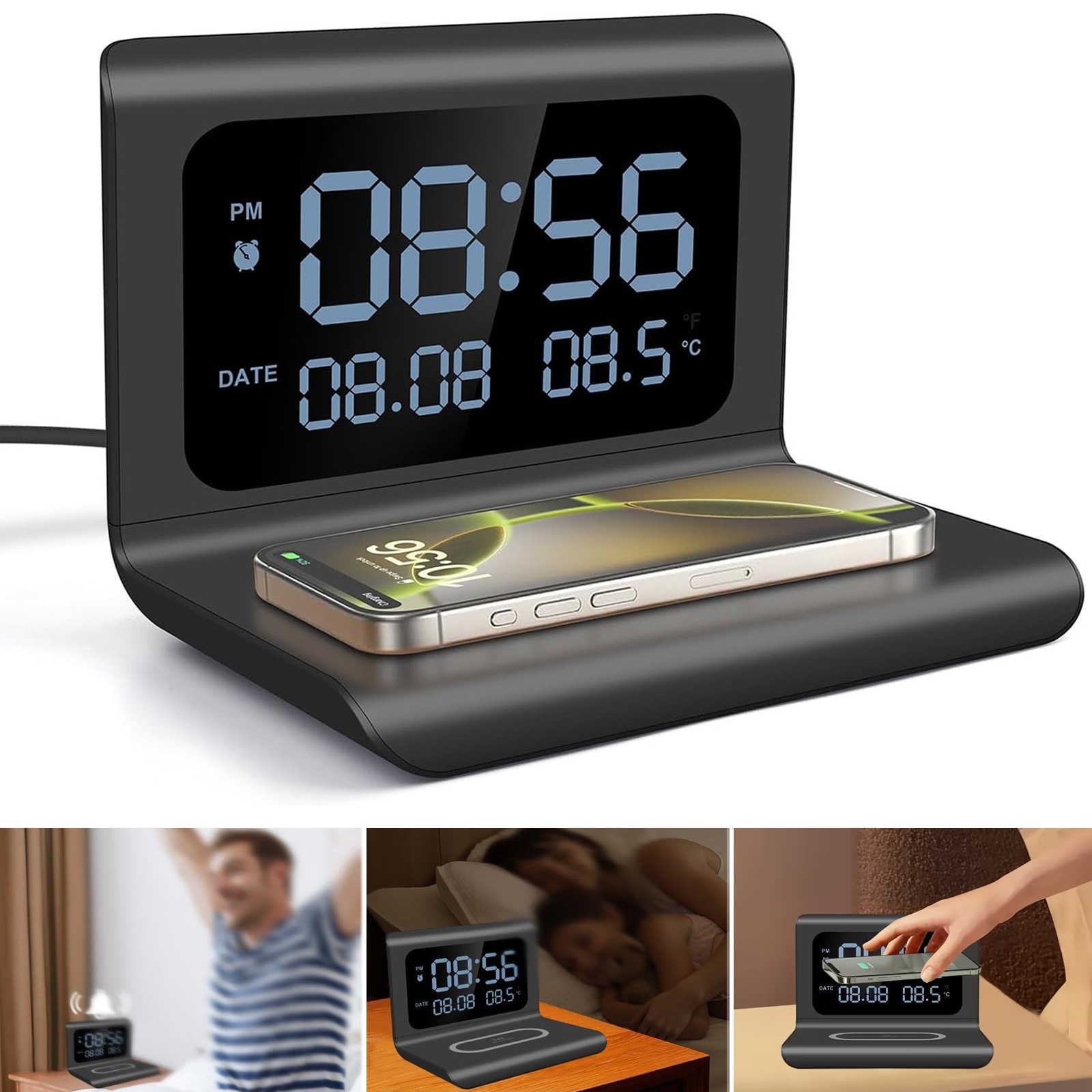 Digitaler Wecker mit 15W kabellosem Ladegerät für iPhone 16 15 14 13 Samsung