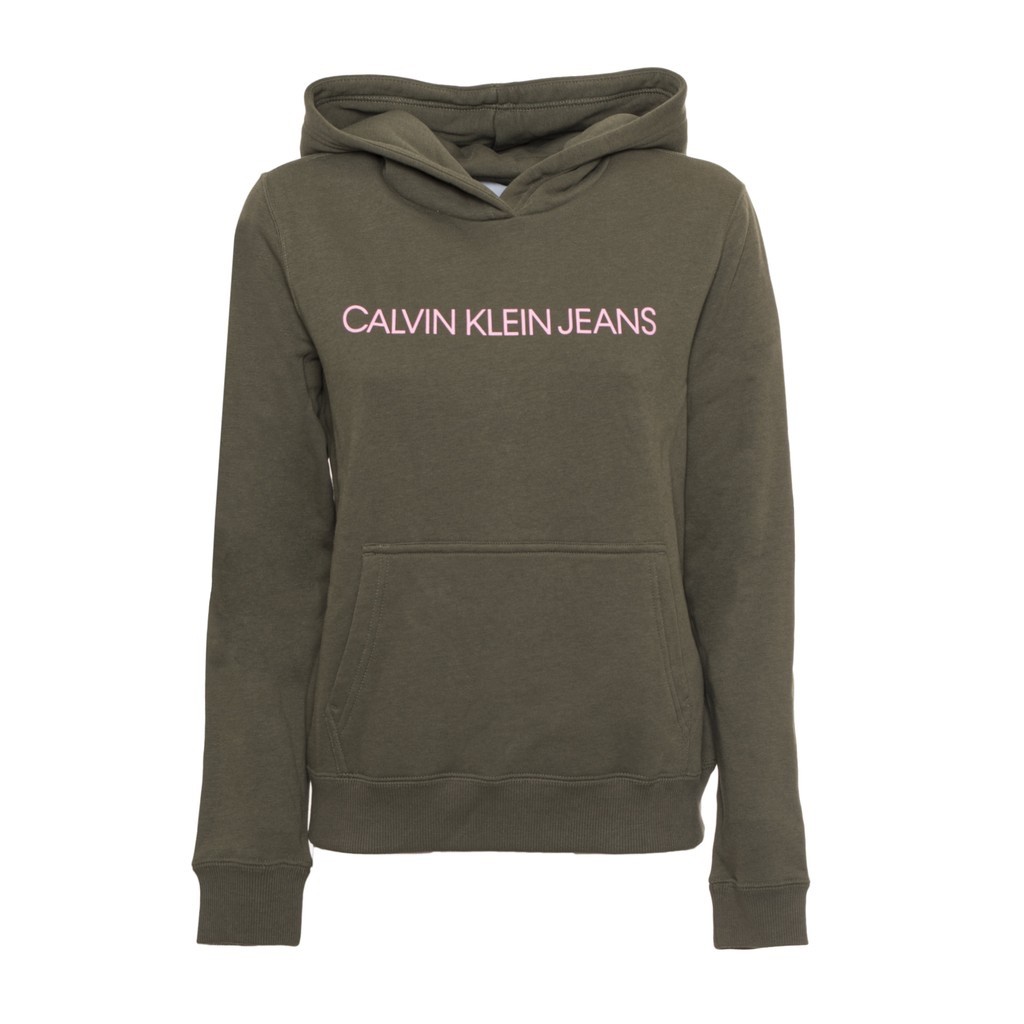 Neu! Calvin Klein Jeans Damen Sweatshirt Hoodie Grün-Pink Logo M Kapuzenpullover
