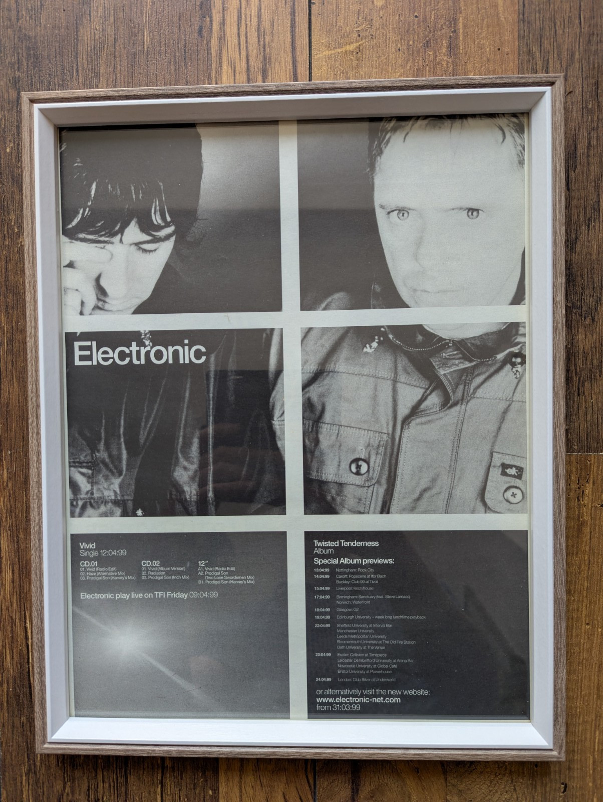 Electronic Vivid/Twisted Tenderness framed original NME page Sumner/Marr
