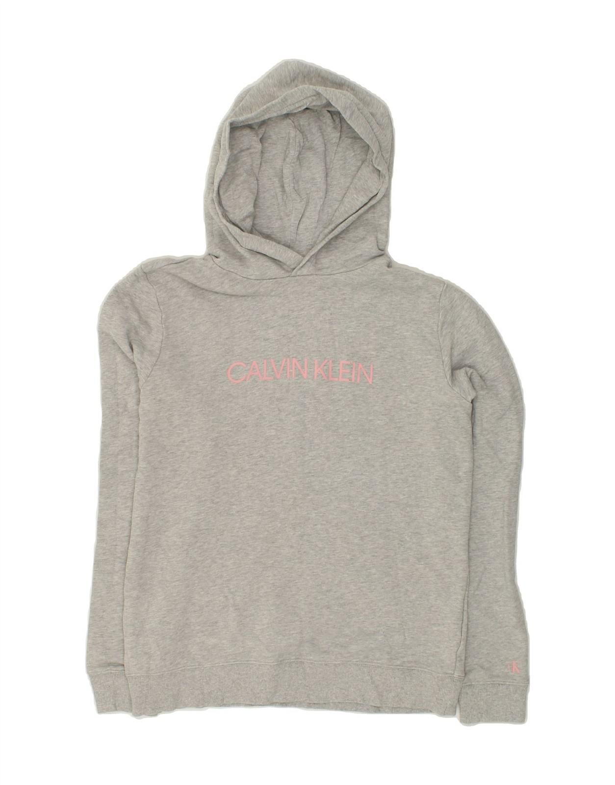 CALVIN KLEIN JEANS Girls Graphic Hoodie Jumper 15-16 Years Grey Cotton AN15.