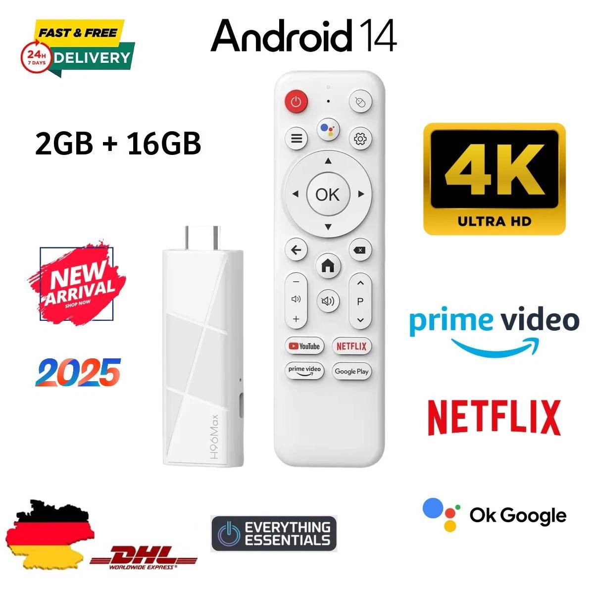2025 New Fire TV stick best streaming device Android 14 (2GB RAM 8GB ROM) Quad Core USB TV Stick mit Bluetooth Sprachfernbedienung + Dual WIFI. Wenn die Fernbedienung mit Bluetooth verbunden ist, können Sie sich frei bewegen und schnell reagieren, was auch ein MIC enthält, um den Google Assistent und die Sprachwahlfunktion zu nutzen.