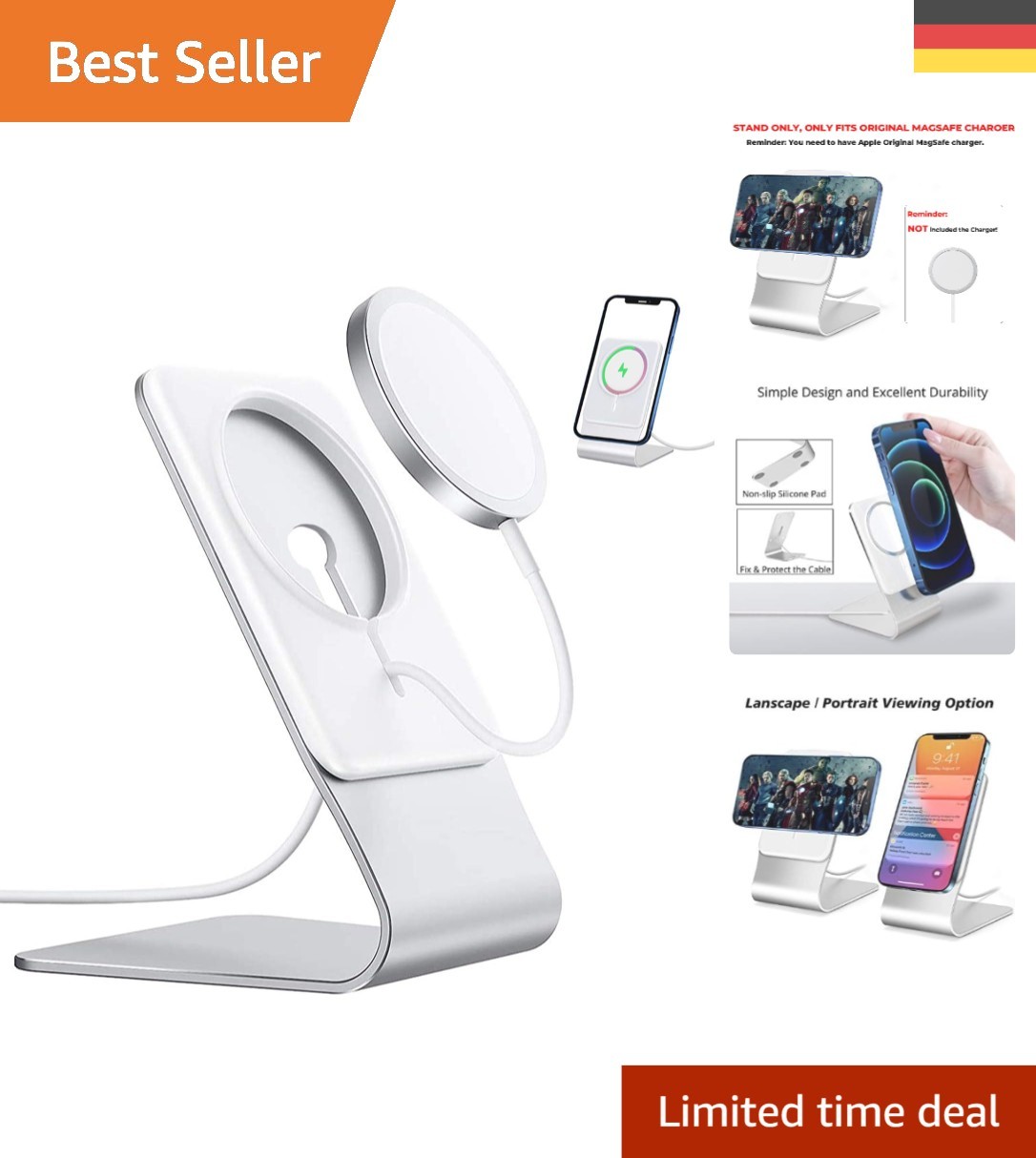 Aluminium Ständer Kompatibel mit Apple MagSafe Ladegerät für iPhone 17/16/15/...
