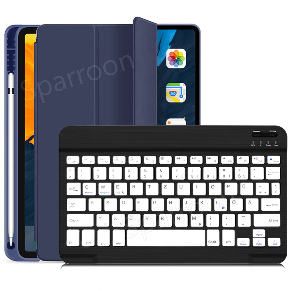 Schutz Hülle mit QWERTZ Tastatur für iPad 7/8/9/10/11. Gen Air M3 M2 Pro 11 2025. Die Tastatur ist mit dem iPad kompatibel, sodass Sie jederzeit wie mit einem Laptop arbeiten können. Die automatische Schlaffunktion der Tastatur kann die Standby-Zeit verlängern, sodass Sie Ihre Sorgen um die Stromversorgung verringern können.