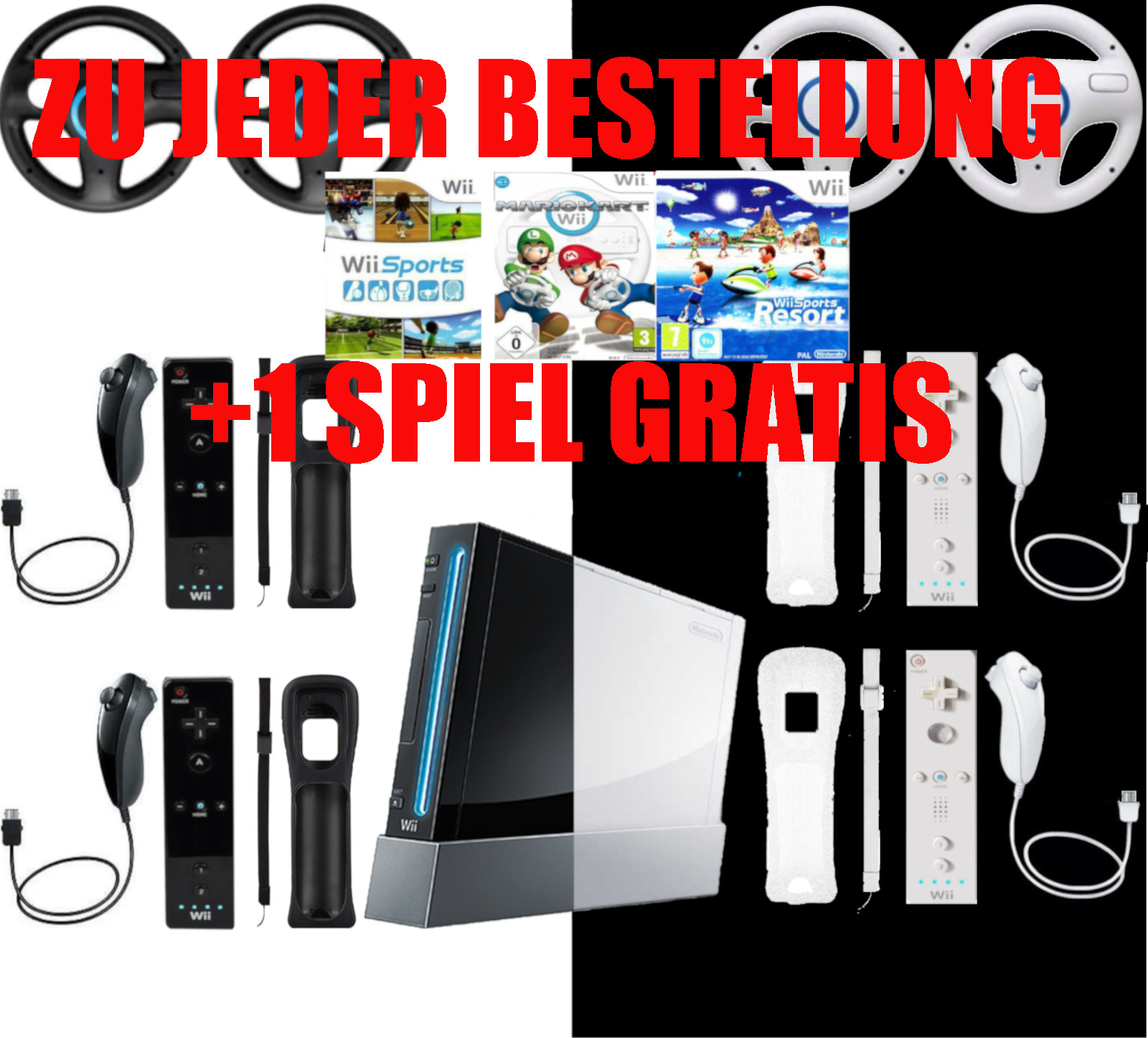 Nintendo Wii Konsole schwarz / weiß Mario Kart, Wii Sports ORIGINAL Controller