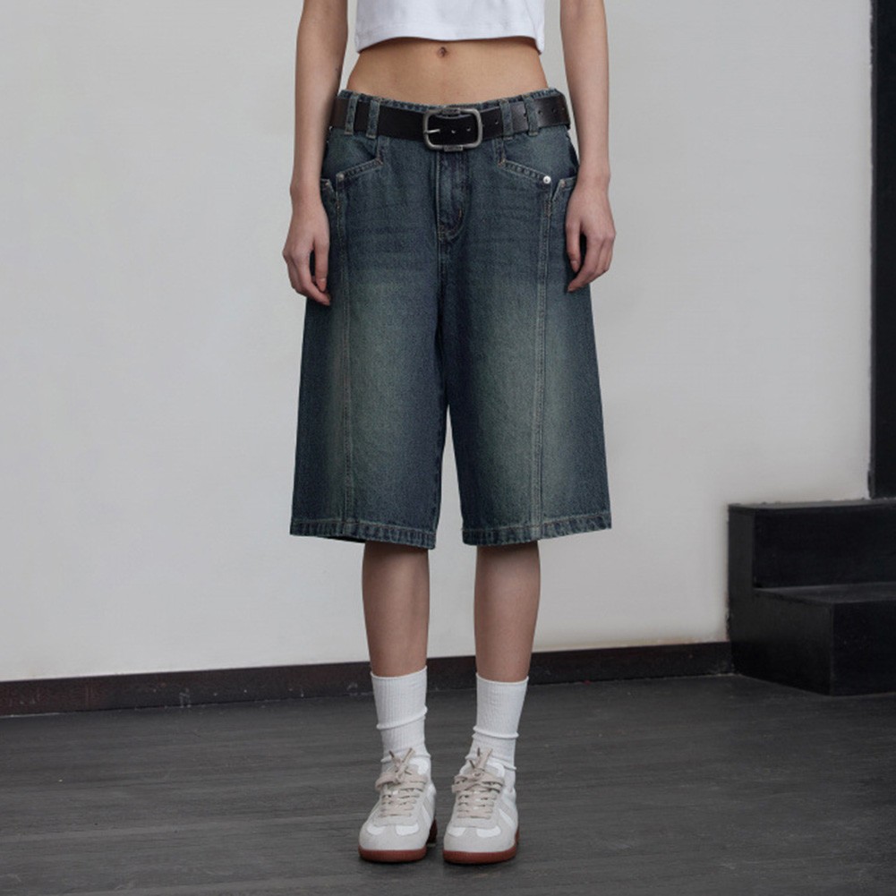Herren Retro gewaschen Used-Look Jeans Shorts lockere Passform gerades Bein läs