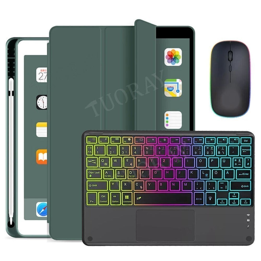 QWERTZ Tastatur. Bluetooth-Maus und -Tastatur können gleichzeitig mit dem iPad verbunden werden. Tastatur Größe:240mmx170mm. Hält den Stift fest an seinem Platz, damit er nicht verloren geht; zwei Löcher hinter dem Halter ermöglichen es Ihnen, den Stift leicht herauszudrücken.