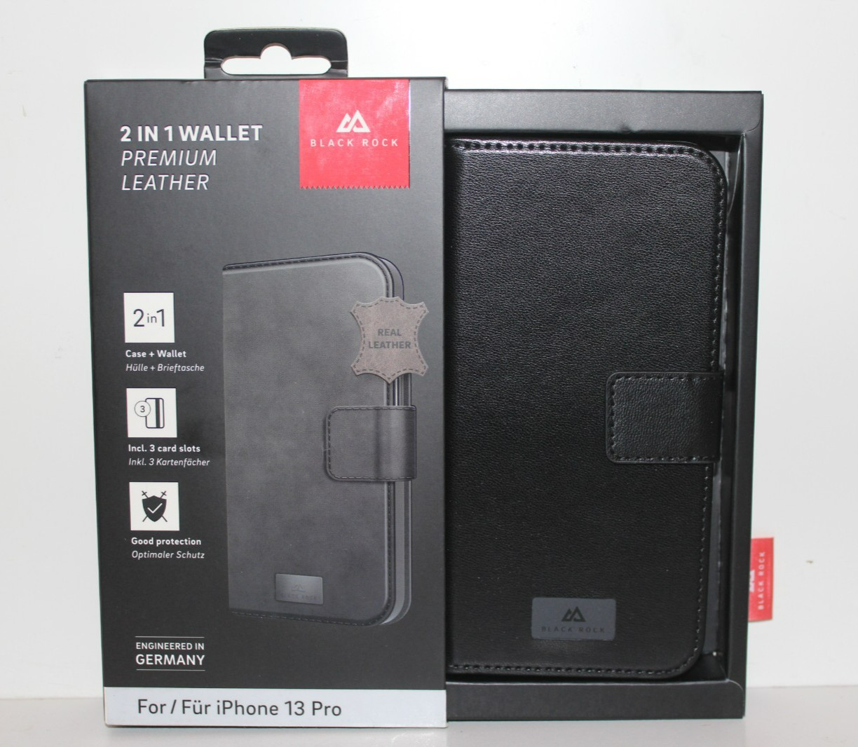 Black Rock 2 in 1 Wallet Booklet Premium Echt Leder iPhone 13 Pro Schutz Hülle