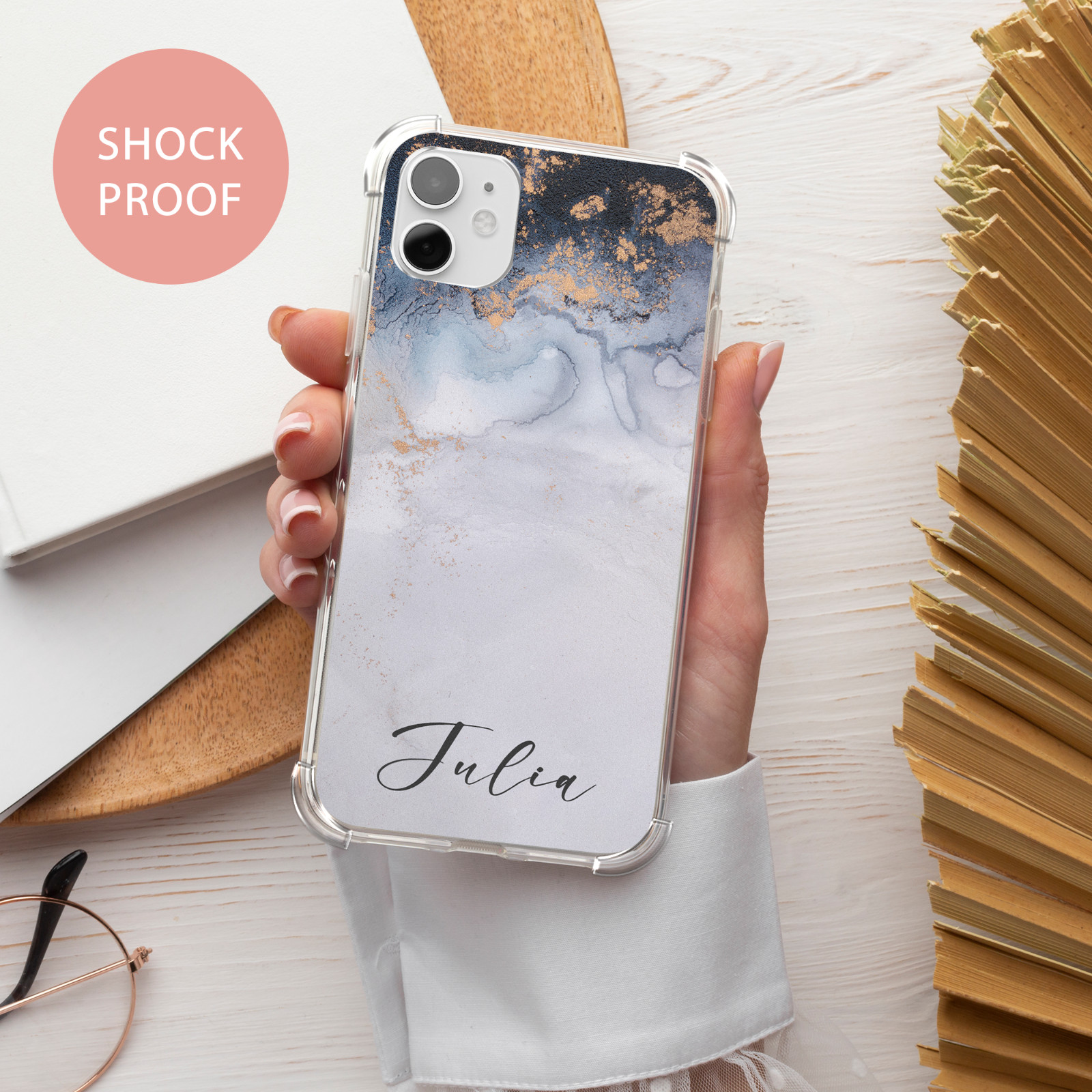 Personalisierte Marmor Handyhülle Name stoßfeste Abdeckung für iPhone 15 14 13 12 11