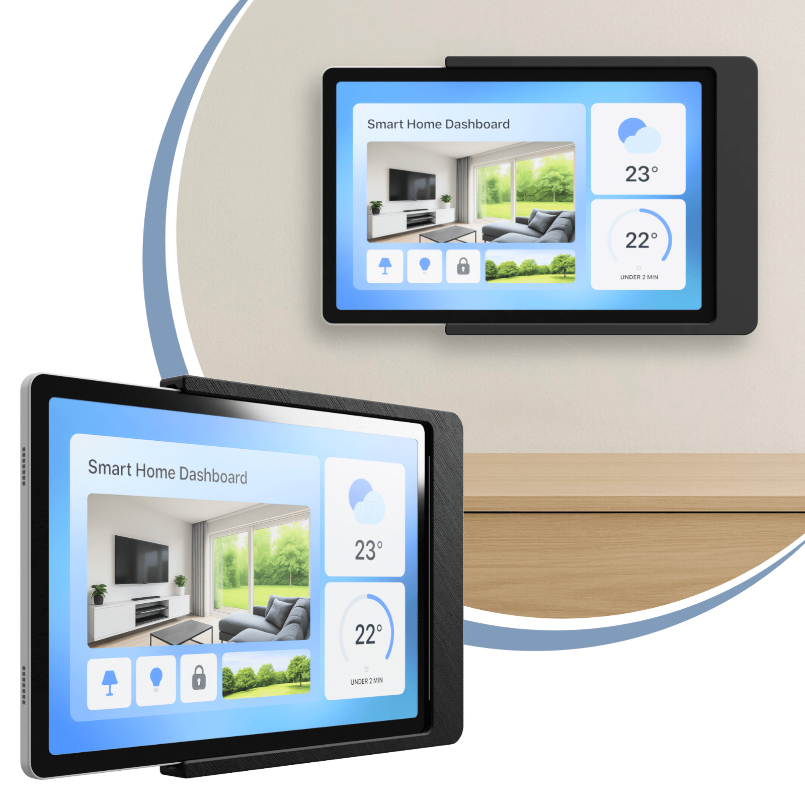 Dank des durchdachten Designs bleibt dein Tablet stets einsatzbereit, ohne dass sichtbare Kabel das Bild trüben. Die interne Kabelführung sorgt für eine moderne Optik. Diese bewusste Herangehensweise unterstreicht die Sorgfalt, mit der wir deine Halterung mit feiner Linientextur fertigen.