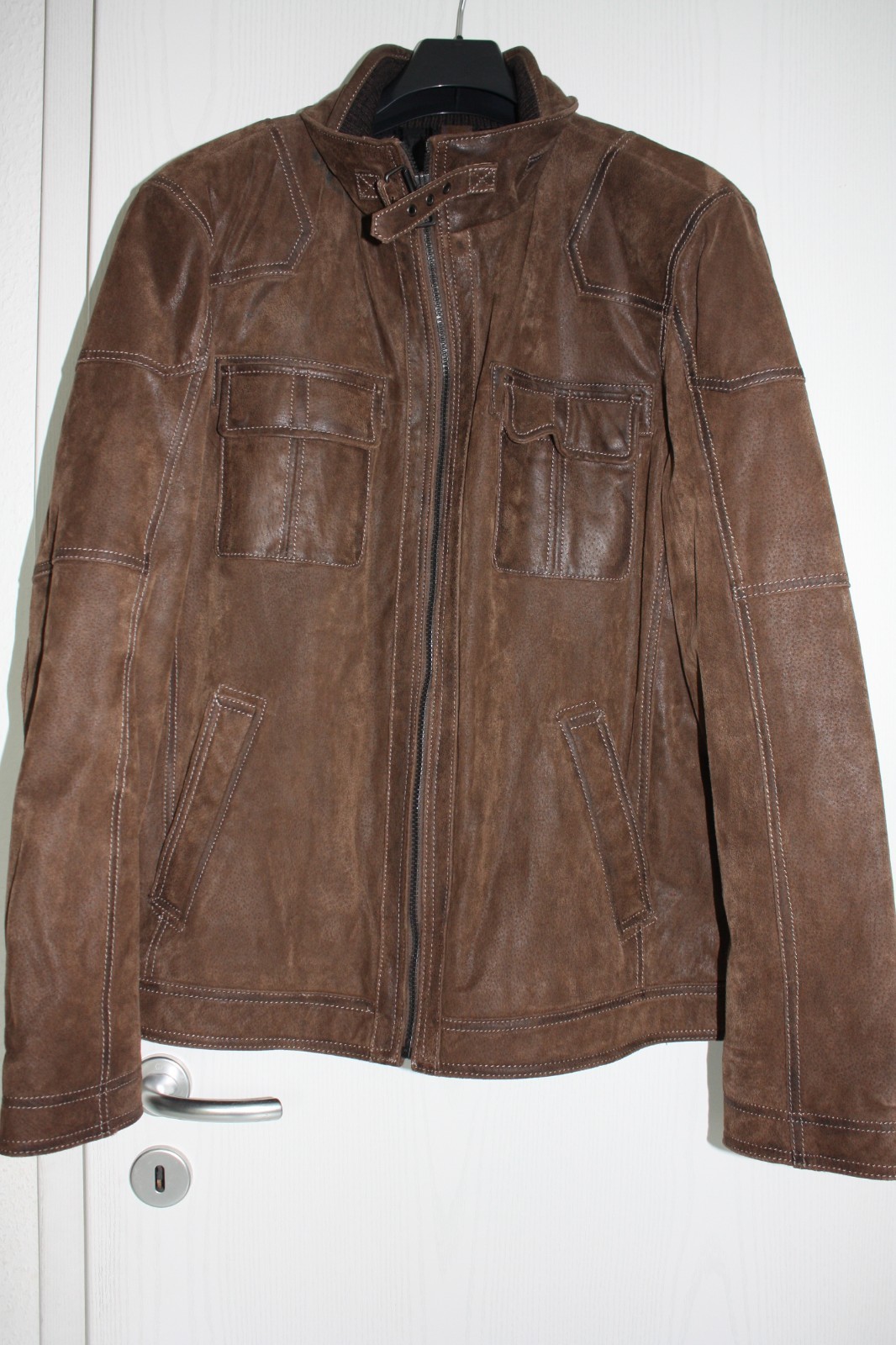 Lassen Sie sich von der zeitlosen Eleganz der braunen Lederjacke von C&A in Größe 52 begeistern. Diese Jacke vereint Funktionalität mit Stil: Aus hochwertigem Leder gefertigt, bietet sie dank des durchgehenden Reißverschlusses sowohl Komfort als auch praktische Handhabung.