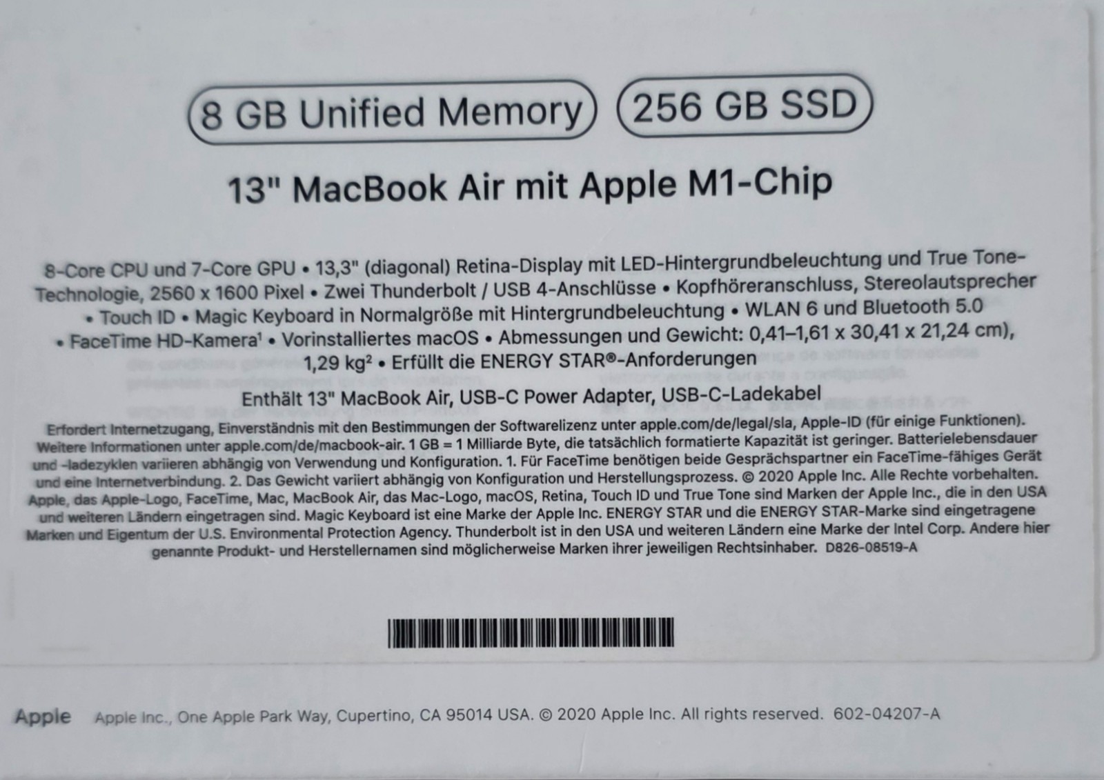 Apple MacBook Air M1 2020 Silber Wie NEU 8GB RAM 256GB SSD