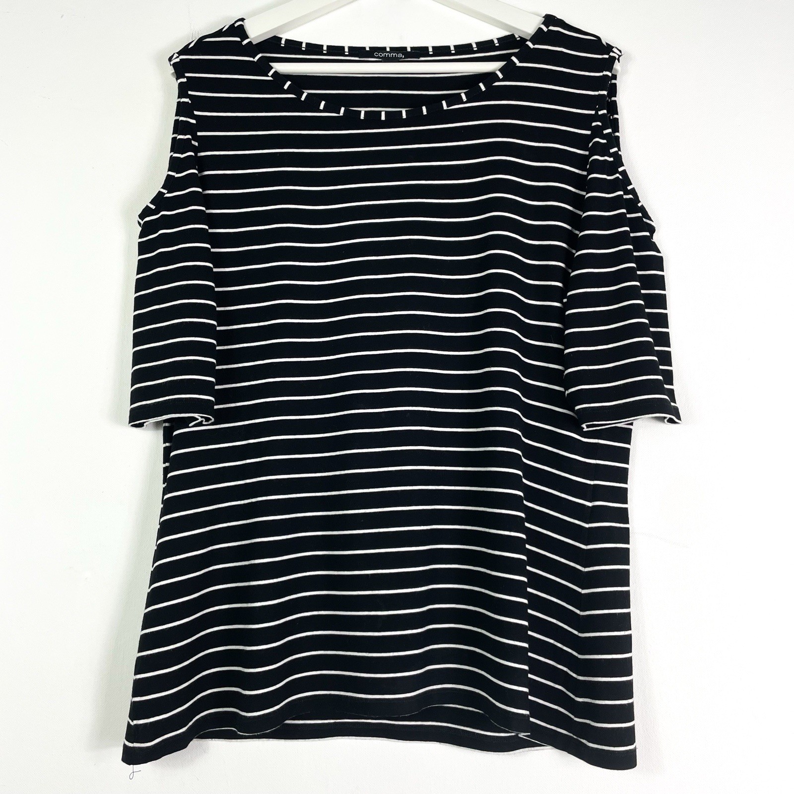 Comma T-Shirt kurzärmliges Oberteil Gr.44 Damen Schulterfrei Gestreift Schwarz