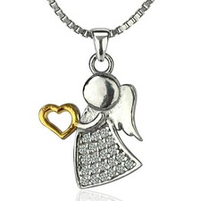 Damen Halskette Schutzengel Anhänger 925 Silber verziert mit Swarovski® Kristall