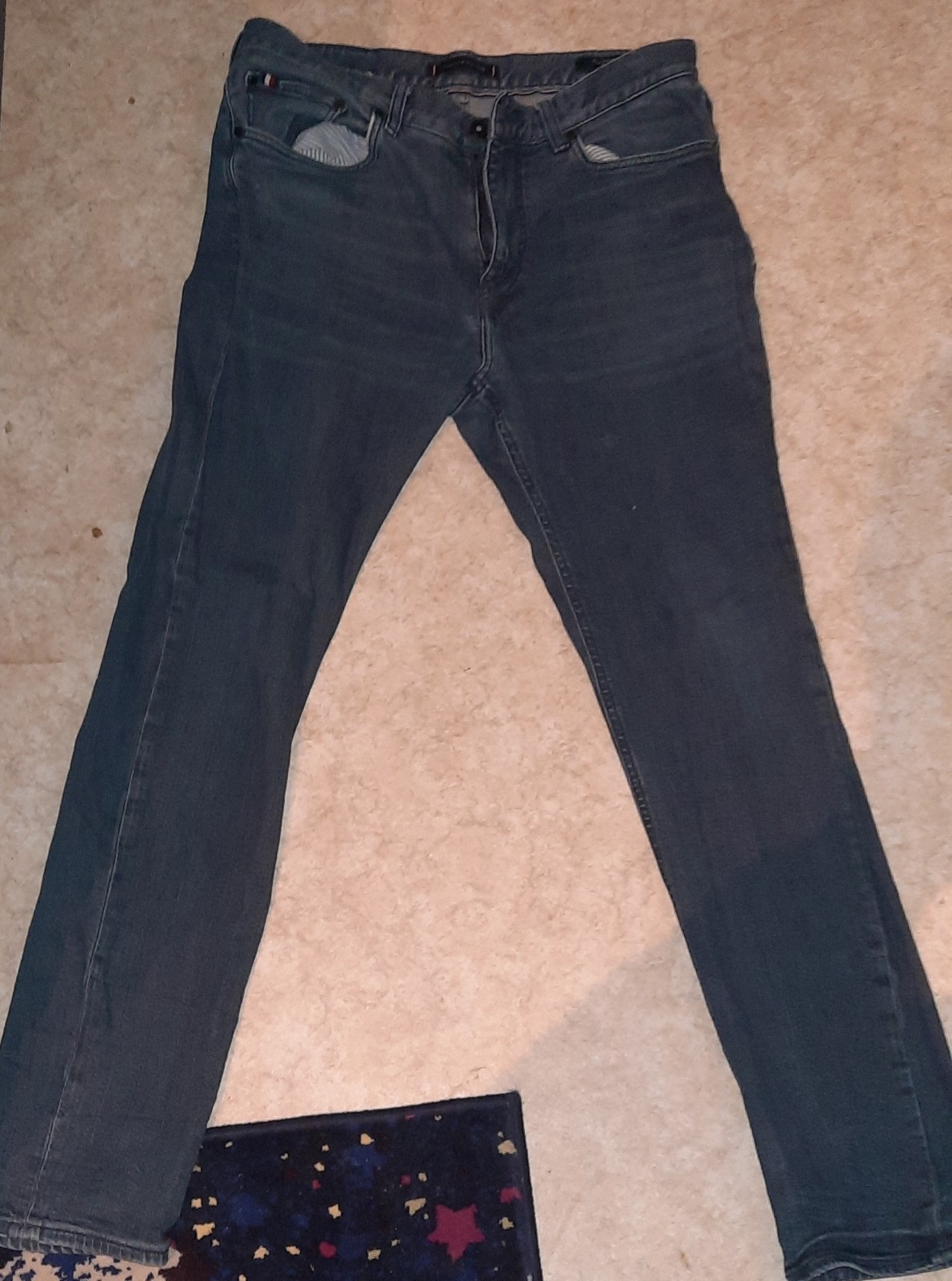 Kaum getragene Herren Jeans von Tommy Hilfiger in der Größe 32/32. Die Maße sind: Schrittlänge: 71,5 cm Bundbreite (einfach von links nach rechts gemessen): 40 cm Komplettlänge: 102 cm Die Hose befindet sich in einem sehr guten Zustand ohne Mängel. Wir sind ein tierfreier Nichtraucherhaushalt! Wichtig: Privatverkauf, daher gewähre ich weder Umtausch noch Sachmangelhaftung!