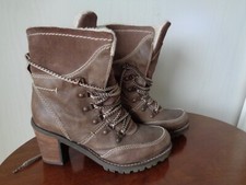 Tamaris Damen Winterstiefel Gr. 39 Braun Leder Warmfutter Lammfell-Optik Boots