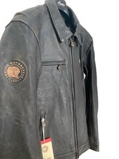 Classic Bomber/Moto Hybrid Design. Indian Motorcycle-Inspired Detailing. Matte black finish with subtle grain texture. Jet Black outer leather with tonal black detailing and hardware. Midweight insulation—ideal for three-season wear (spring/fall/winter).