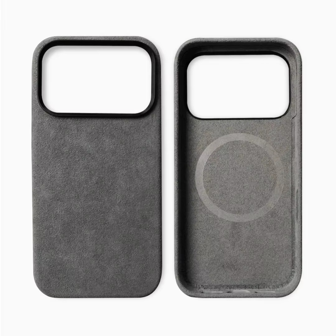 Erleben Sie erstklassigen Schutz und elegantes Design mit der Alcantara-Magnethülle, speziell konzipiert für das iPhone 17 Pro Max. Diese hochwertige Bumper-Hülle besticht durch ihre ansprechende Optik und das weiche, strapazierfähige Material, das nicht nur Ihr Smartphone stilvoll veredelt, sondern auch vor Kratzern und Stößen schützt.