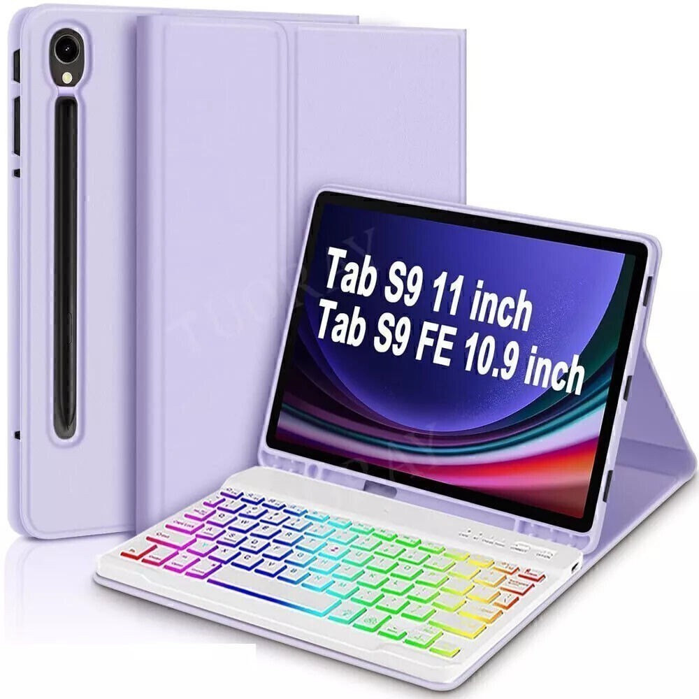 QWERTZ Tastatur Hülle Mit Beleuchtete Für Samsung Galaxy Tab S10 S9 FE S9 S8 S7. Bluetooth-Tastatur (QWERTZ) mit Beleuchtet. Abnehmbare Touchpad-Tastatur und Vollschutzabdeckung. 1 x USB-Ladekabel. Leder Hülle.