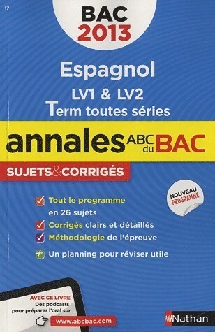 Titre : Espagnol LV1 & LV2 Terminales toutes séries, sujets & corrigés 2013 Auteur : Sylvie Duru Etat : Occasion - Bon Etat Collection : Annales ABC Année : 2012