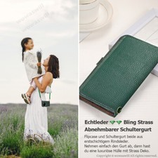 ※Echtleder Handytasche zum Umhängen※. Das Echtleder Klapphülle bietet 2 Kartenfächer,ein Geldfach und einen Platz für das Foto,dank dem Magnetverschluss. Hülle nicht tragen möchtest,nimmst einfach den Tragegurt ab,dann hast du eine luxuriöse Echtleder Flip Case mit Strass Deko.